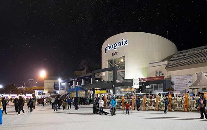 - 휘닉스 파크의 먹거리, 놀거리를 한곳에서 즐길 수 있는 곳으로 음식점, 게임 랜드, 볼링 센터, 노래방 등이 위치해 있습니다.