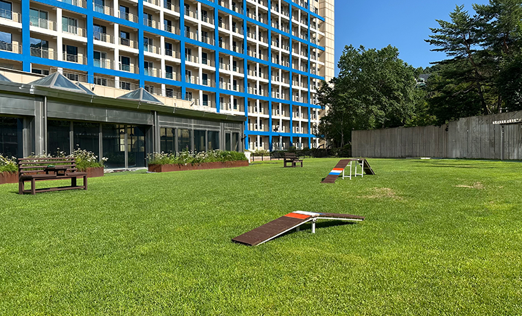 - 푸른 자연 속, 반려동물과 함께하는 자유로운 시간! 탁 트인 전용 놀이터에서 반려동물과 함께 뛰어놀며 여행의 여유로움을 즐겨 보세요.